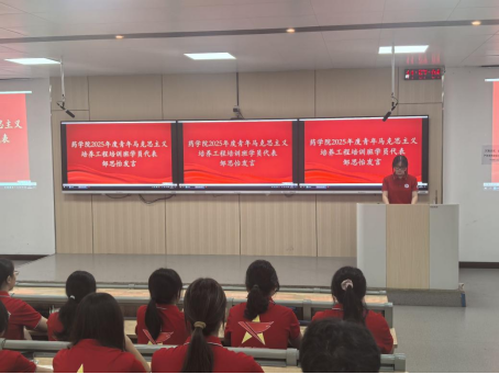 仪式上,周其其老师宣读了药学院2025年青马班学员名单,袁天浩、邹思怡等18名同学正式成为新一期青马班成员。这不仅是一份荣誉,更是一份责任,激励着他们在今后的学习与实践中发挥先锋模范作用。